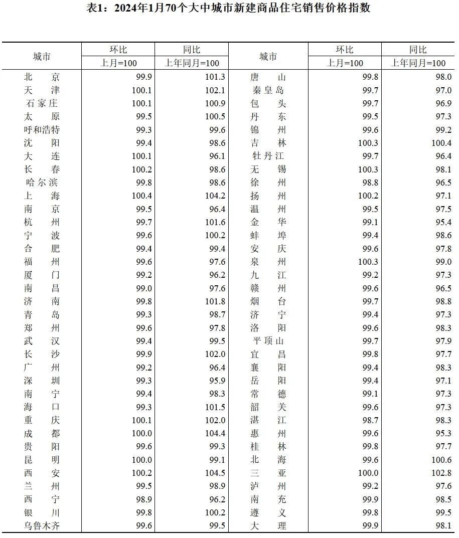 ——国家统计局城市司统计师王中华解读2024年1月份商品住宅销售价格变动情况统计数据